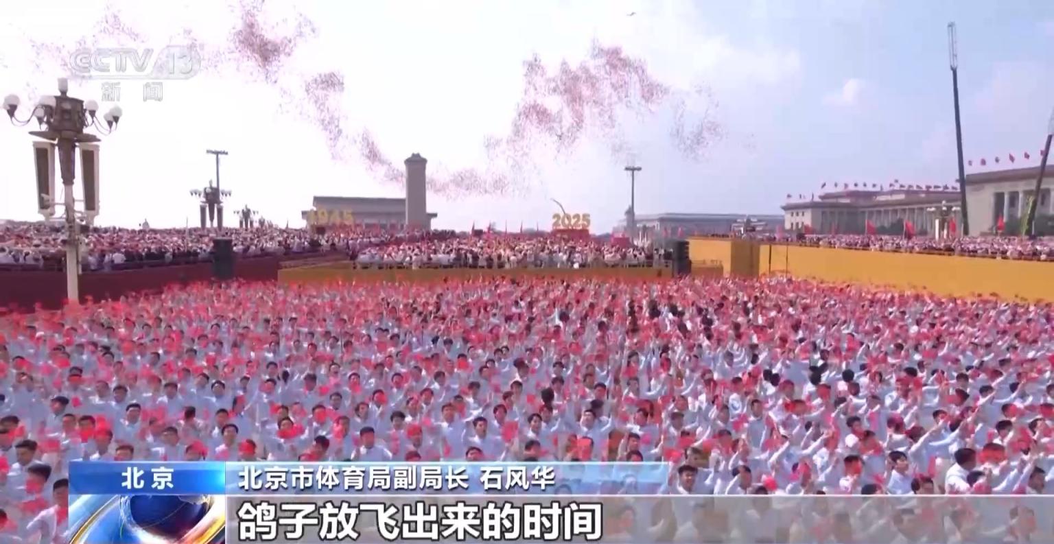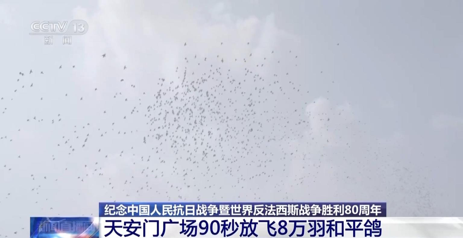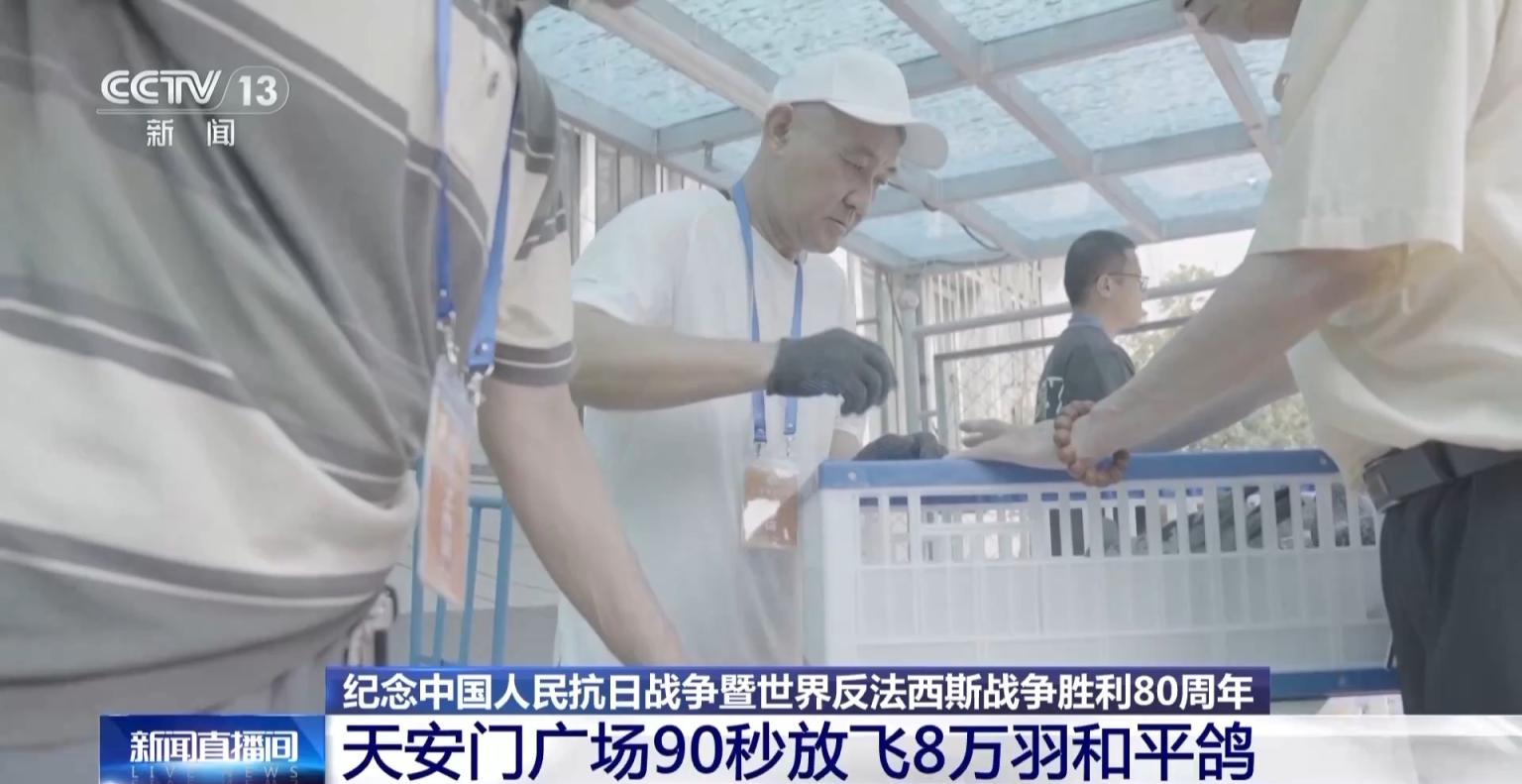 纪念中国人民抗日战争暨世界反法西斯战争胜利80周年大会的结尾,8万羽和平鸽在天安门广场放飞国汇策略,象征着中国的和平力量,也寄托着中国人民对和平与繁荣的追求和希望。这8万羽和平鸽要在1分30秒之内全部放飞,与随后放飞的气球形成时间差。为了在现场呈现最佳效果,技术团队精心设计,三千多个养鸽户倾力支持,将这份和平之思融入细节中。