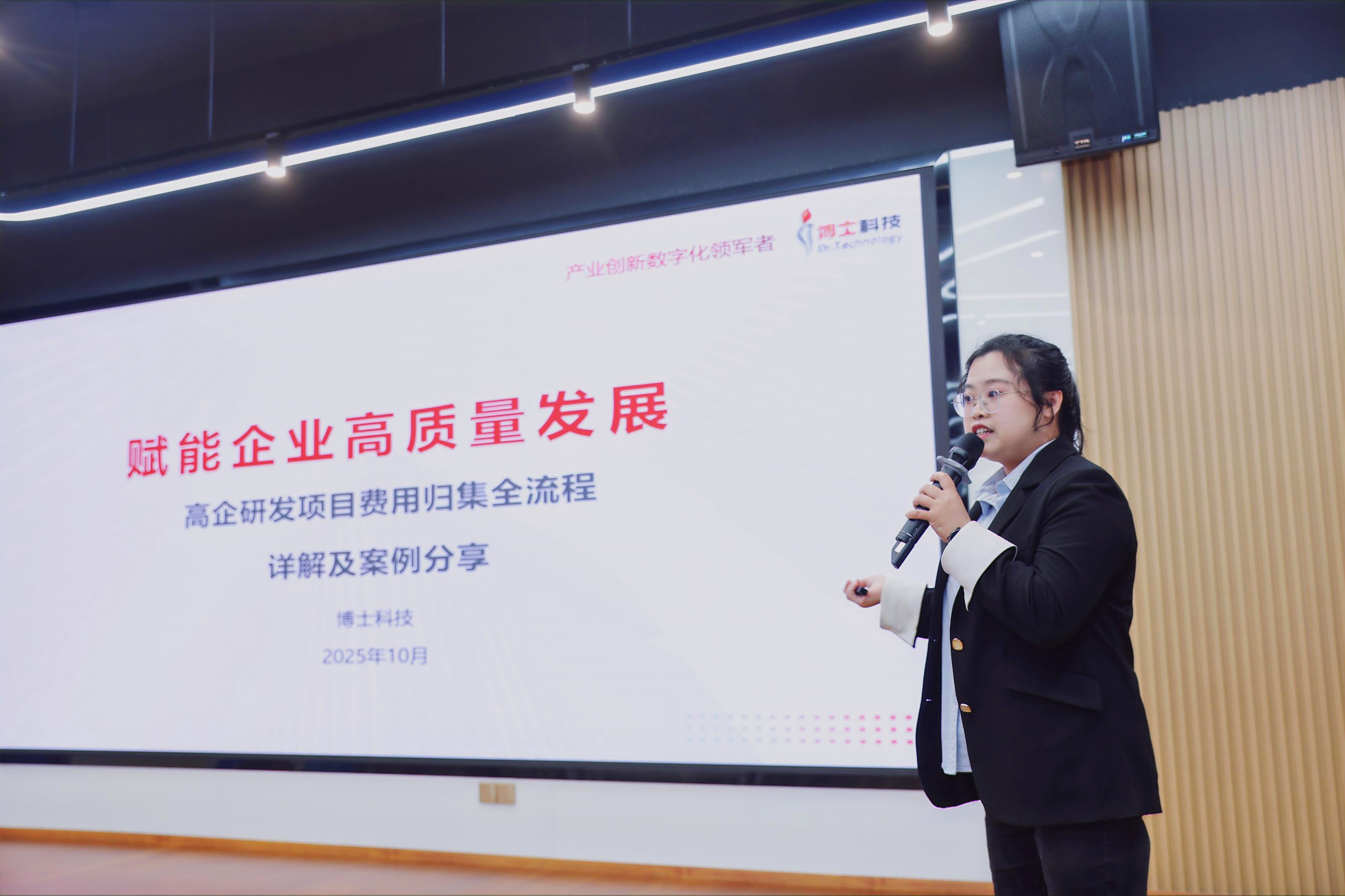 博士商学院特聘讲师杨洁纯首先带来《高企研发项目费用归集全流程详解及案例分享》主题分享。高新技术企业的认定与持续发展,离不开规范、高效的研发费用管理。杨洁纯系统梳理了高企研发费用归集的归集范围、核算方法及全流程管理要点,清晰地指出了企业在研发费用管理中常见的误区与风险点,帮助企业厘清了研发投入的财务脉络,为提升企业内部管理规范性、充分享受政策红利、稳固创新根基提供了专业指导。