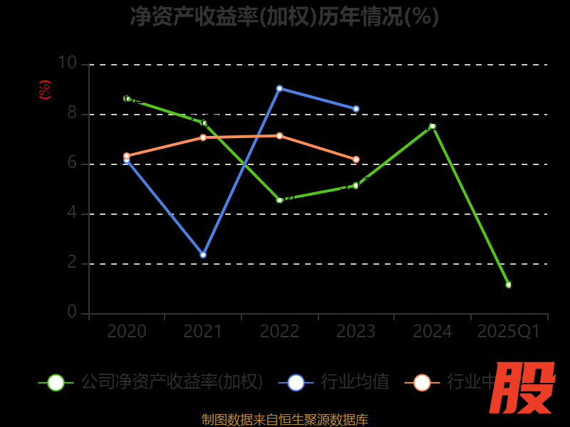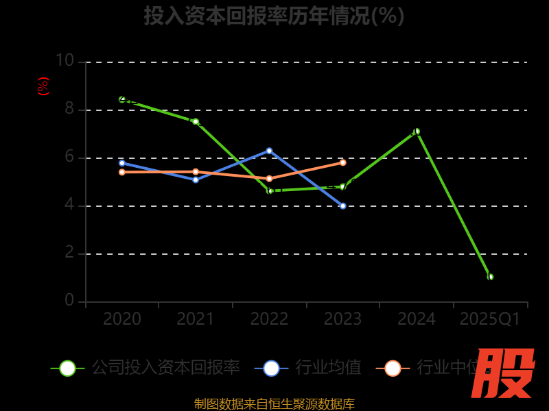 盈利能力方面, 2025年一季度公司加权平均净资产收益率为1.14%,同比下降3.7个百分点。公司2025年第一季度投入资本回报率为1.02%,较上年同期下降3.64个百分点。
