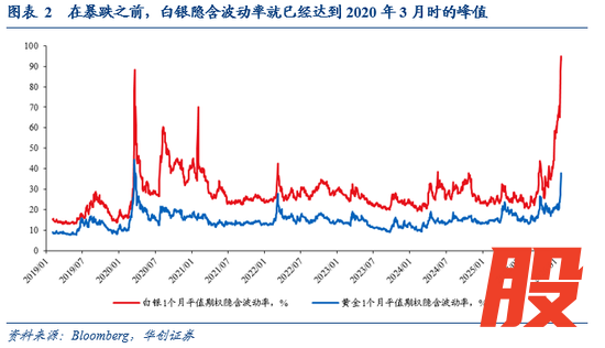 沃什的“用专业性维护联储独立性”的理念,可能打断了去美元化叙事的非线性加速演绎,美元指数大幅反弹,以贵金属为代表的商品市场大幅调整。但这一轮跌这么多,更可能的是,波动是波动的主要来源。以白银为例,1个月平值期权隐含波动率(简单理解为市场预期未来1个月的价格年化波动幅度),今年1月以来在高位基础上再度直线跳升,从55%升至90%左右,至本周已超过2020年3月,正常水平在20-30%,市场极难持续维持如此高的波动。